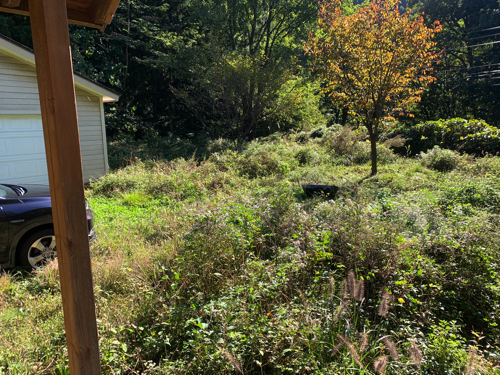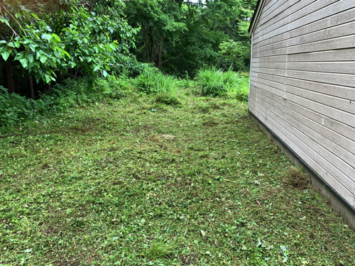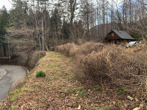 ガレージ東側には2mちかい背の高い草が 生え茂っていましたので、一気に除草しました |