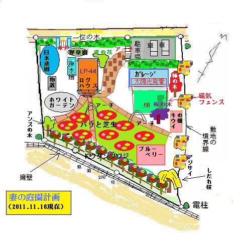 | 中の桜(次郎と名付けました)と焼却器 | 左の桜(三郎と名付けました)とガレージと愛車 |