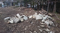 | ログハウス | 庭の西側隅の廃棄材や石の山 | 西側に植えてあった木 |