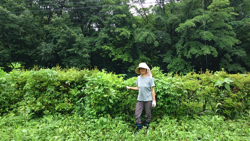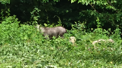 東奥の境界付近は雑草を残しておきましたら、そこ から牛のような動物が顔を出しました。 |