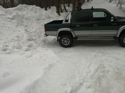 雪を押しつぶしながら、回転しました。 さすが4WDハイラックスですね。 |