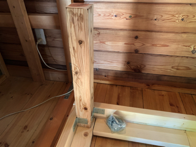階段を作製しながら、計画を便利なように変更しました。これで、ロフトに上がらなくても、1階で寝ることができます。お昼寝などに便利ですね。